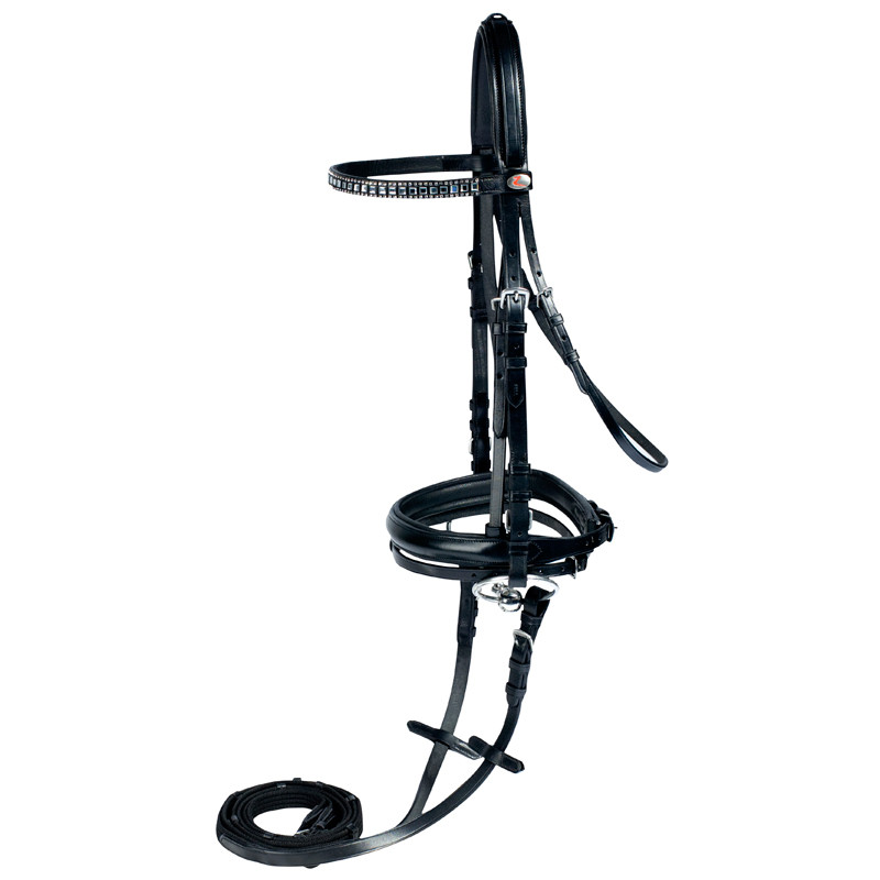 Diamond Hoofdstel Trens hoofdstel van hoogwaardig leder met zachte zwarte voering op de neusriem. De neusriemband gaat over het kopstuk voor extra comfort. Webband teugels inbegrepen