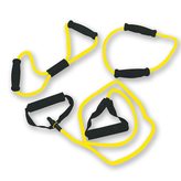 Tubing set met handvaten, bestaande uit drie verschillende modellen (light, medium en heavy) voor diverse oefeningen.
