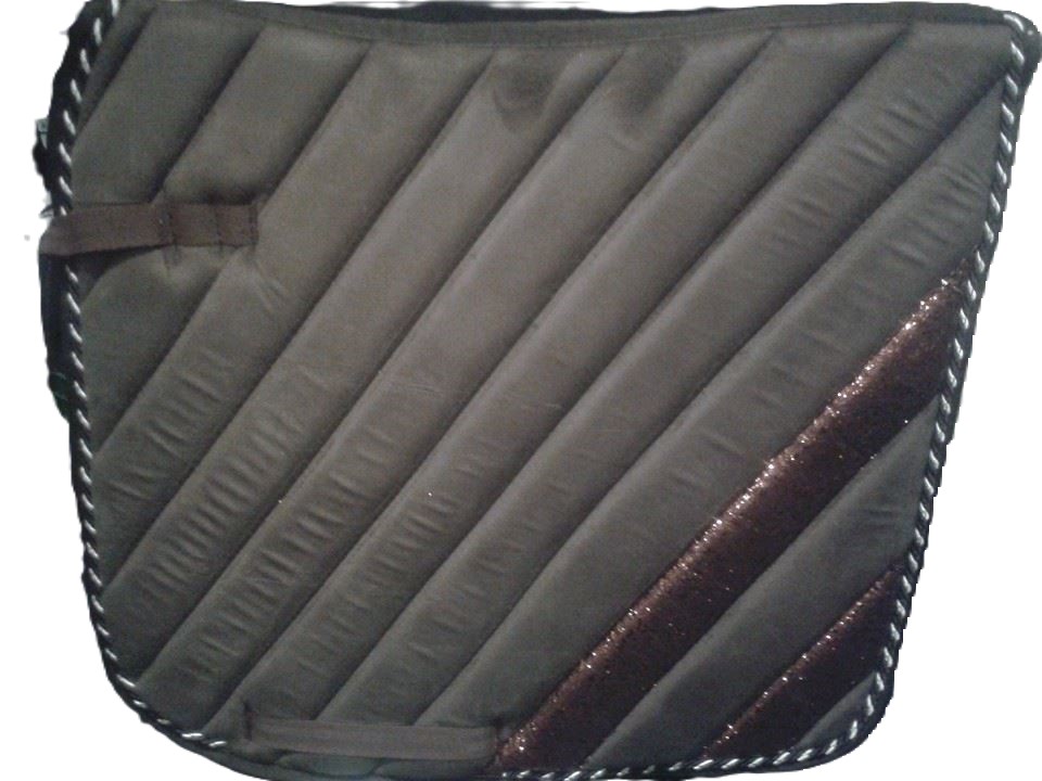 Exclusief dressuurdekje met strass. De katoenen voering zorgt voor een snelle vochtopname en de anatomische uitsnijding voor een super pasvorm!