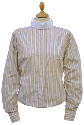 Luxe gestreepte wedstrijdblouse, voorzien van zilverkleurige Lurex draad, geeft een glinsterend effect. Samengesteld uit 65% polyester, 35% katoen