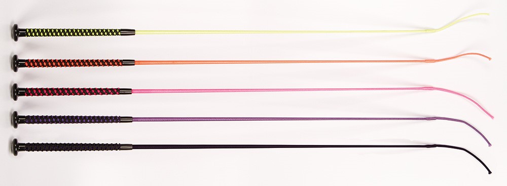 Fel gekleurde zweep met bijpassend handvat voor extra grip en comfort.