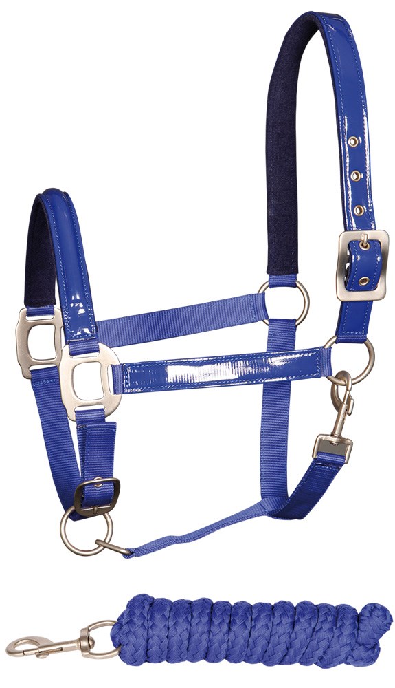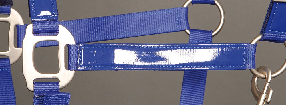 Stevig nylon halster, neusriem en kopstuk zijn zacht onderlegd met een domy suede padding. Voorzien van klipsluiting aan de keelriem en verstelbaar met schuifgesp aan het kopstuk.