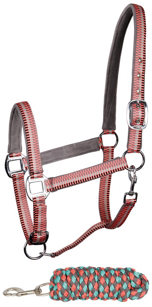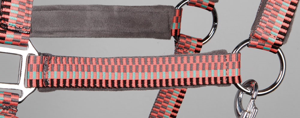 Halsterset met satijn stof met borduursels, fleece padding, verstelbaar neus- en kopstuk.