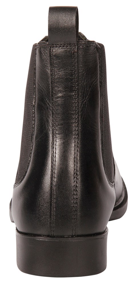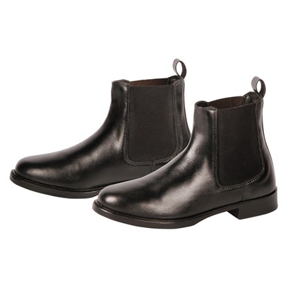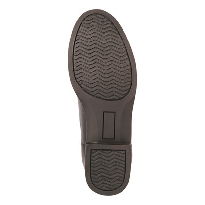 rijschoen van leer met elastiek en rubberen zool.