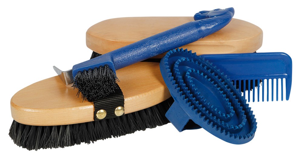 Poetstas gevuld met poetssetje, groot logo op de voorkant, vakje aan de binnenkant voor de mobiel, klittenband sluiting