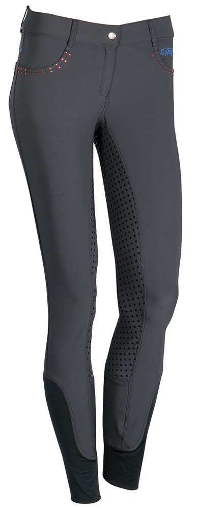 Luxe rijbroek met deocratieve kristal accenten langs de zakken.
