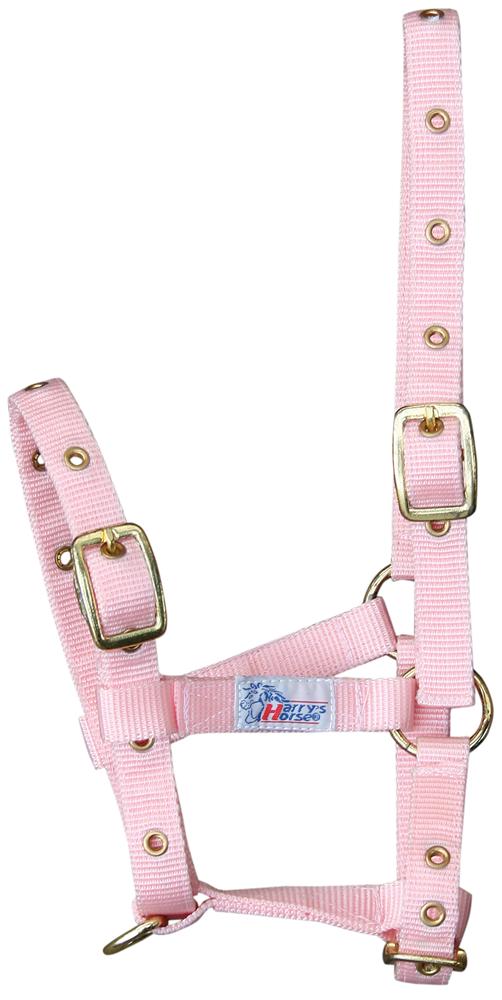 Dit veulenhalster is op drie punten verstelbaar, daardoor bruikbaar van veulen tot jaarling. Goudkleurige fournituren, gaatjes voorzien van ringen.