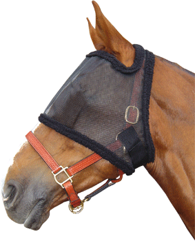 Vliegenmasker met coupenaden bij de ogen. Stevig materiaal, rondom met fleece afgebiesd. zonder oren.