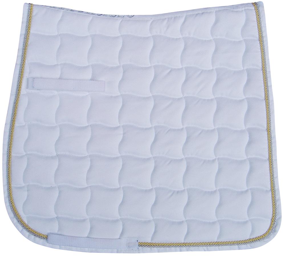 Luxe zadeldek gemaakt van synthetisch suède. Dubbel koord en geborduurde bies. Singellussen voorzien van klittenband. Vulling uit foam en polyfill, vochtregulerende voering.