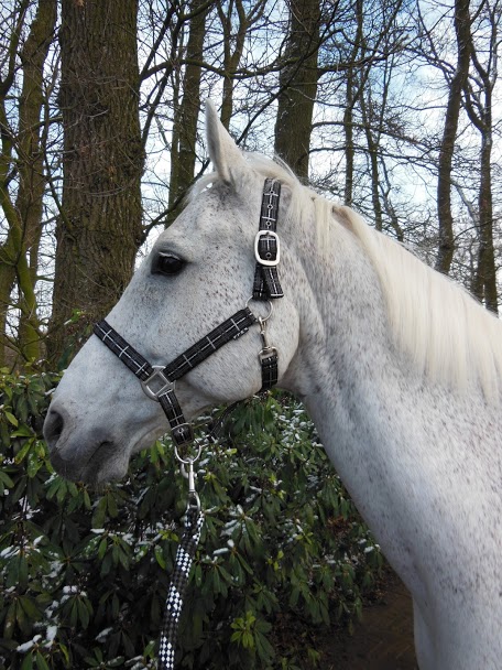 leuk geruit halster set van horka met zilverdraad verwerkt in het halster en touw.