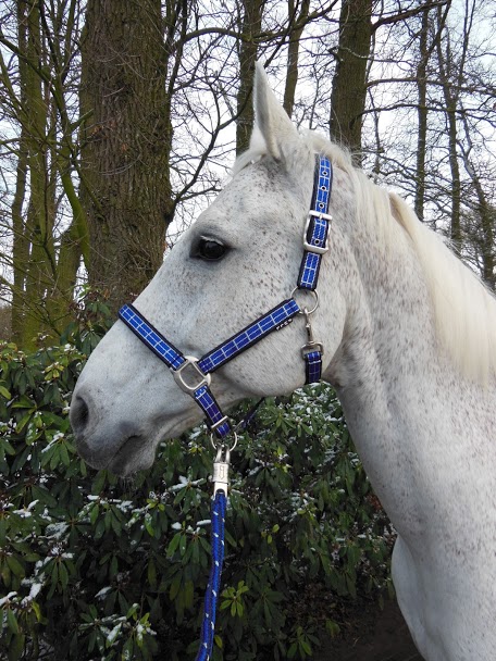 leuk geruit halster set van horka met zilverdraad verwerkt in het halster en touw.