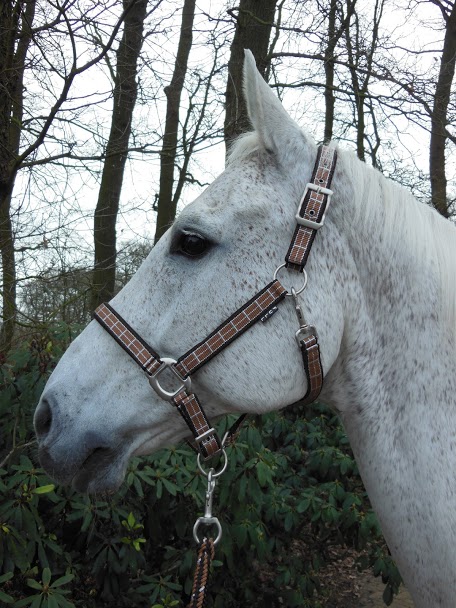 leuk geruit halster set van horka met zilverdraad verwerkt in het halster en touw.
