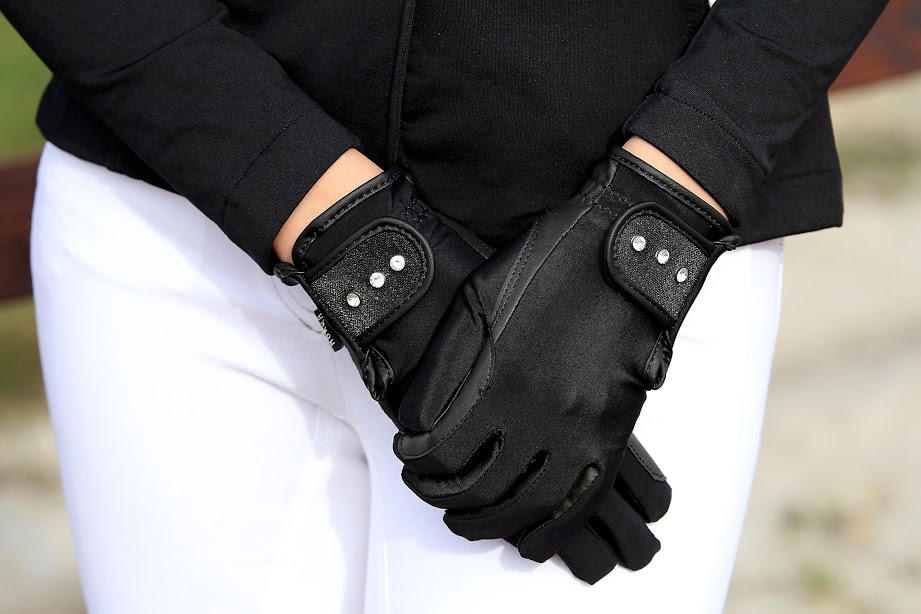 Deze handschoenen hebben 3 blinkende steentjes.