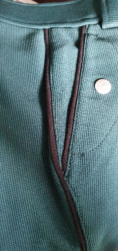HET Model stofcode 17 - Aanpassend heupmodel (achteraan licht verhoogd) - 2 steekzakken met drukknop DE STOF Modieuze heupbroek met zitnaad, een strakke pasvorm, McCormick® kniestukken, een Velcro enkelsluiting en steekzakken met drukknoop. Fijne rib, superelastisch.