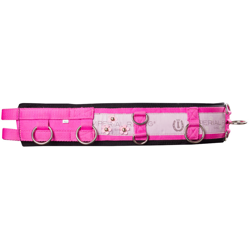 Longeersingel van nylon met neopreen voering, met ringen voor diverse instelmogelijkheden. Met bloemenprint.