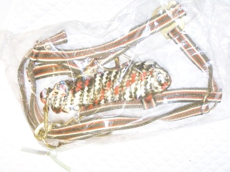 Trendy Halster met luxe koper kleurige fournituren van Imperial Riding met bijpassend halstertouw. Het halster en touw zijn in verschillende kleuren opgebouwd. Het halstertouw is vervaardigd uit een zeer zacht aanvoelend touw met luxe koper kleurige musketonhaak.