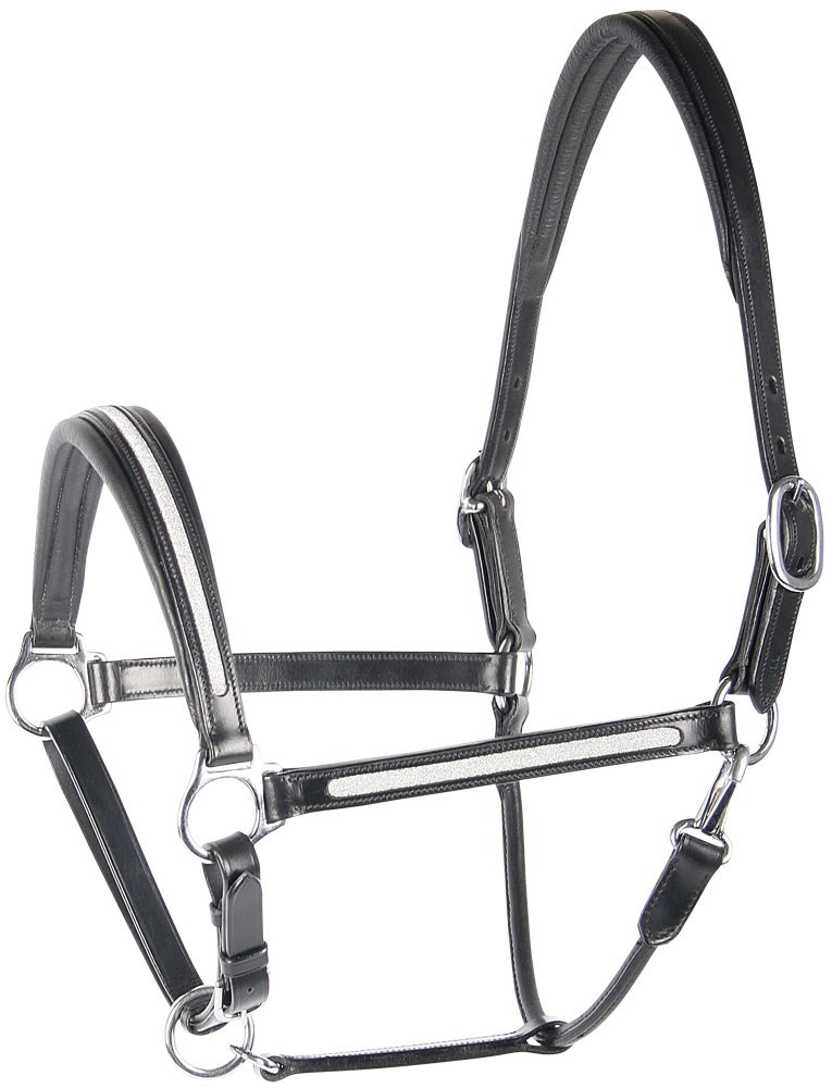 Luxe, lederen, smal gesneden halster met "Glamour" decoratie in zilver op de bakstukken en neusriem.