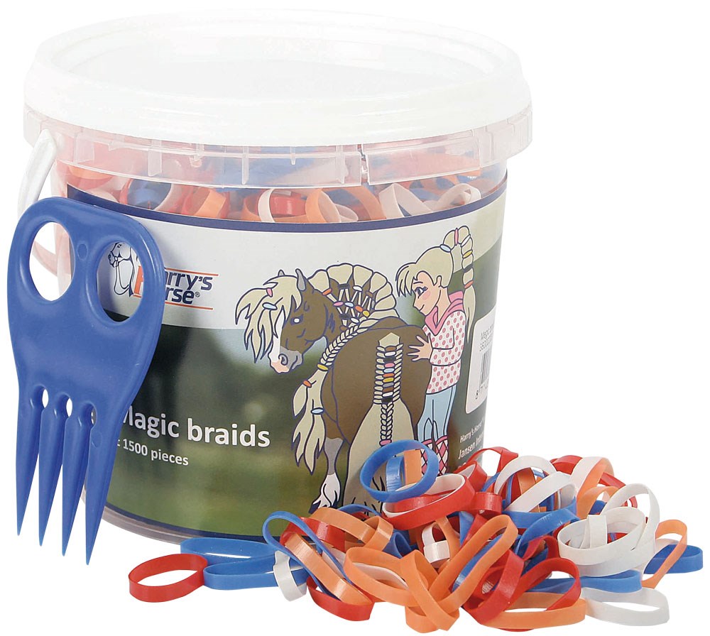 Superleuke elastiekjes voor het invlechten van de manen. Extra sterk, flexibel en herbruikbaar! Wordt geleverd in handig potje incl. manenkam.