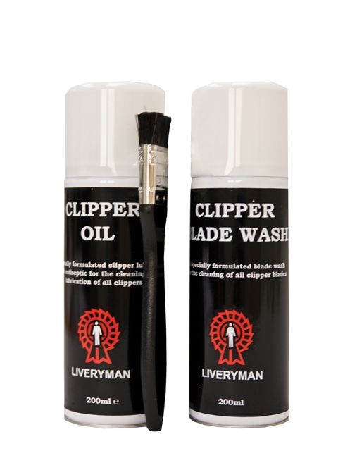 Speciale olie in sprayvorm en Speciale Reinigingspray voor de scheermessen + kwast speciaal voor de Liveryman scheermachines