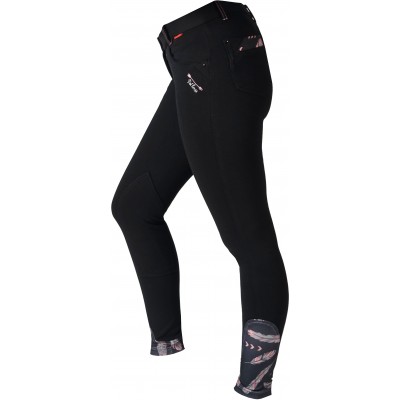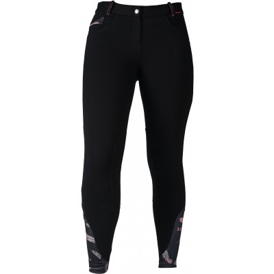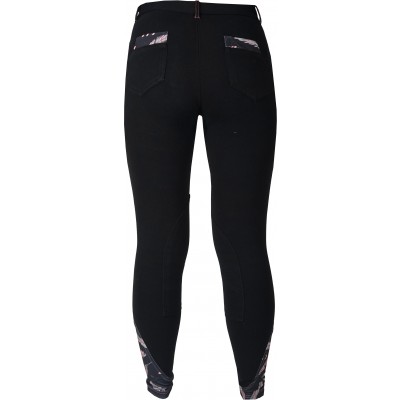 Basis rijbroek voor kinderen, gemaakt van katoen. De broek heeft elastische enkelsluitingen en stoffen kniestukken. De Livvy is vormgegeven met geborduurde accenten