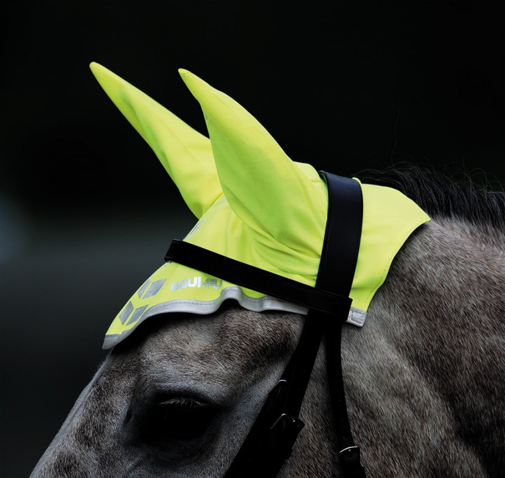 Helder reflecterend oornetje met elastische fleece gevoerde oren, Dit oornetje is ontworpen om netjes onder je hoofdstel te passen, Leverbaar in 2 kleuren en 3 maten,