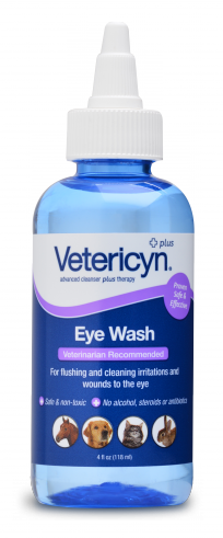 Gebruiksaanwijzingen: Veeg overtollige vloeistof dat zich in de hoeken van de ogen heeft verzameld weg. Spoel de ogen voorzichtig met Vetericyn®. Breng twee keer per dag aan, totdat het aangedane gebied hersteld is. Naspoelen is niet nodig.
