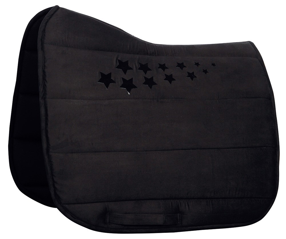 Luxe premium zadeldek in suedelook met silicon sterrenprint. Hoge kwaliteit polyfill vulling en speciale wicking away voering. Voor de beste vocht afvoerende/regulerende werking. zadellussen met velcro. 100% polyester.